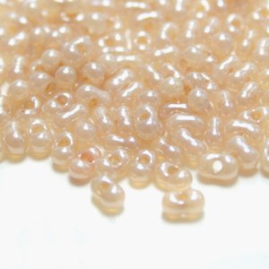 半透明の乳白色に着色、ラスター加工のピーナッツ。柔らかい色調が特徴です。ファルファーレとほぼ同型のピーナッツビーズです。