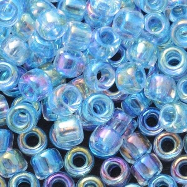 「トランス・インサイド・レインボー」は、透明のビーズ穴の部分に半透明〜透明色の着色をし、表面にレインボー加工をしたビーズです。キラキラと美しく輝き、穴の着色部分は「インサイド・レインボー」と比較すると透明感があり、地布や糸の色が透けるビーズです。透明感を生かした作品に!