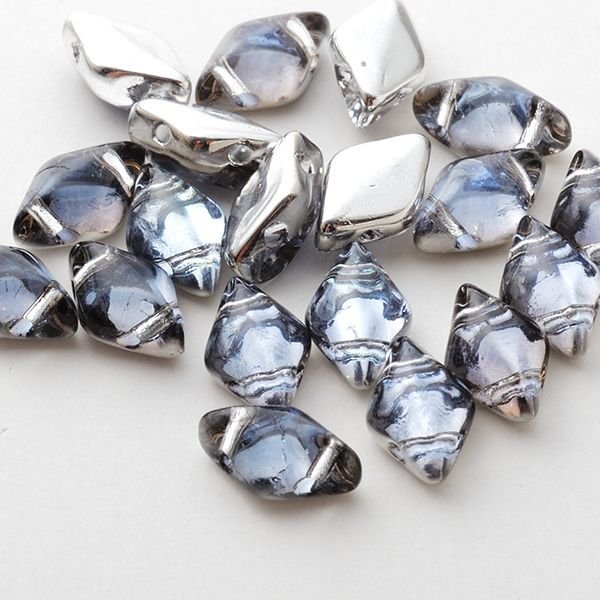 ジェムデュオは2ホールのダイヤ型のビーズです。ジェム(宝石)の名前の通り、カット風の模様があり、表裏で違うデザインになっています。