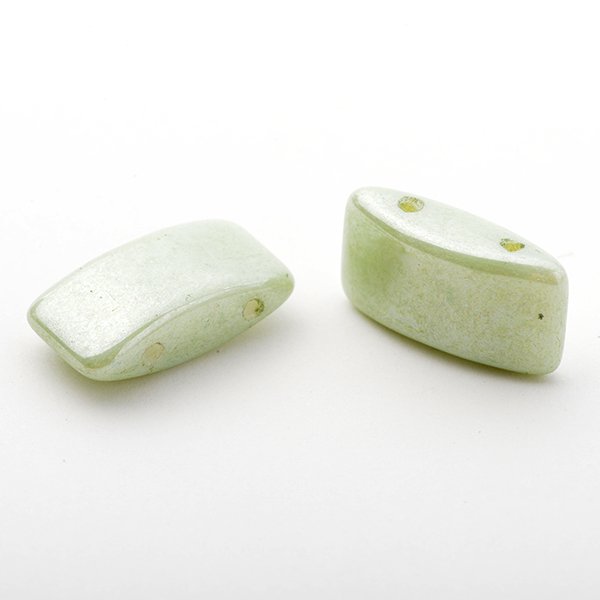 そのまま使うほか、ペヨーテなどのビーズ織りで編みくるむ使い方が提案されている2ホールビーズです。出来上がったビーデッドビーズをアクセサリーに使うとカッチリと立体的になり、平面のビーズ織りとはまた違う表情が楽しめますね♪