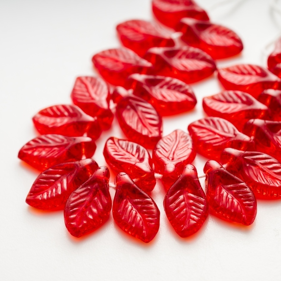 【現品限り】ミニリーフ 11 x 6mm シャム ルビー ビーズアート40号 使用ビーズ