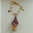 ソフトクリームのチャームは3種類。作品を入れるプレゼントの時にもお使いいただけるオーガンジーの巾着袋入り。コーン部分は2種類の編み方をレシピに記載、その他段ごとに使用するビーズの個数表やクリーム部分の全体図も封入しております。