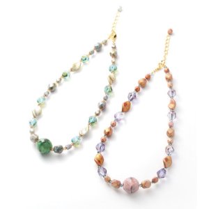 レシピを誌面に載せたものが上記のローズとグリーン2色のネックレスです。