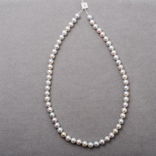 淡いナチュラルなグレー系のパール。わずかにピンクやグリーンがかった玉が混じる美しいミックスカラーがおしゃれです。