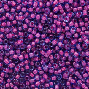 透明な色ガラスのビーズの穴に不透明カラーを着色することで、発色が良く様々な色合いを楽しめる丸小ビーズ。