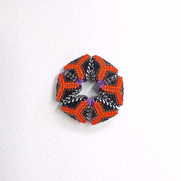 もとは折り紙の世界のカレイドサイクルから発想し、ビーズの特性を生かして、よりシンプルに再構成いたしました。