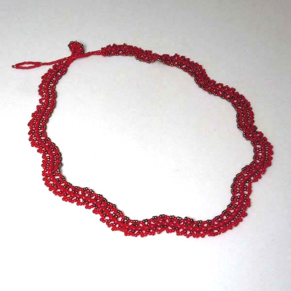 留め具の輪をアジャスターにしています。色はオペークレッド。