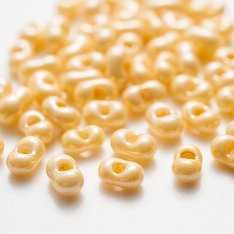 日本でのお取扱は珍しいマツノビーズです。こちらは連ねたときにランダムなボリューム感が出る「ピーナッツ」型。