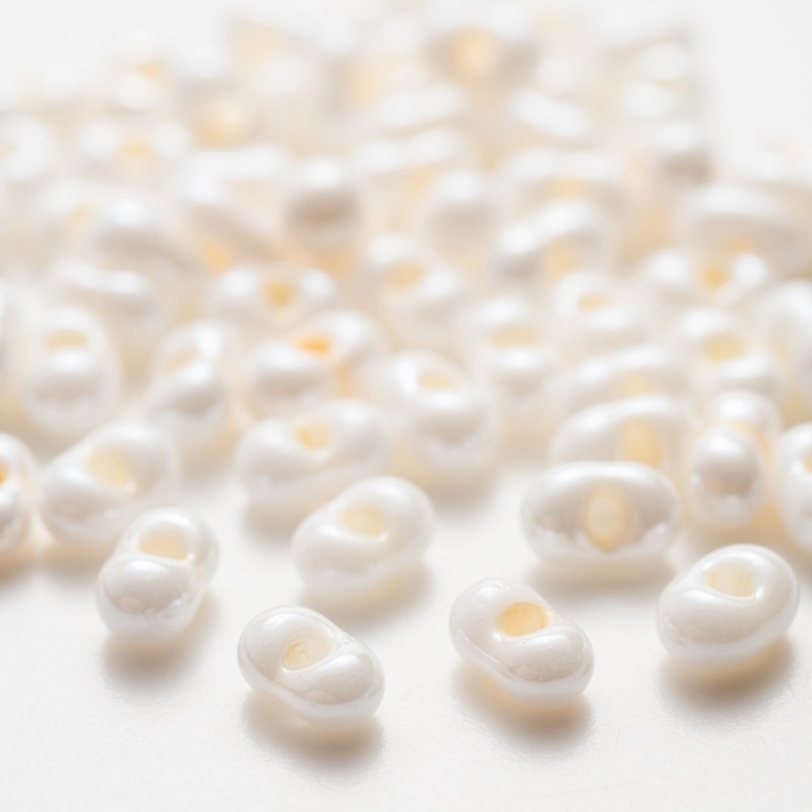 日本でのお取扱は珍しいマツノビーズです。こちらは連ねたときにランダムなボリューム感が出る「ピーナッツ」型。